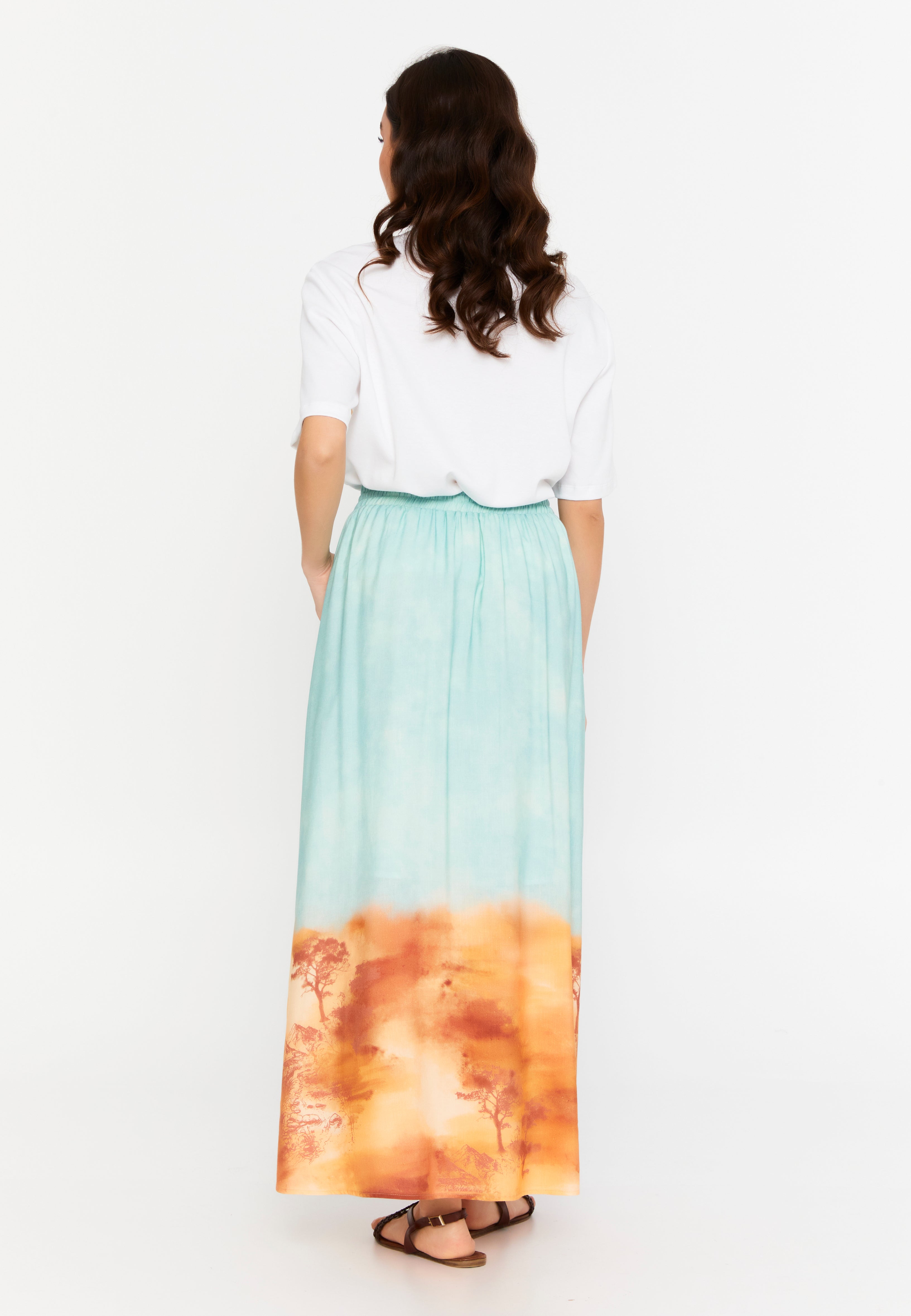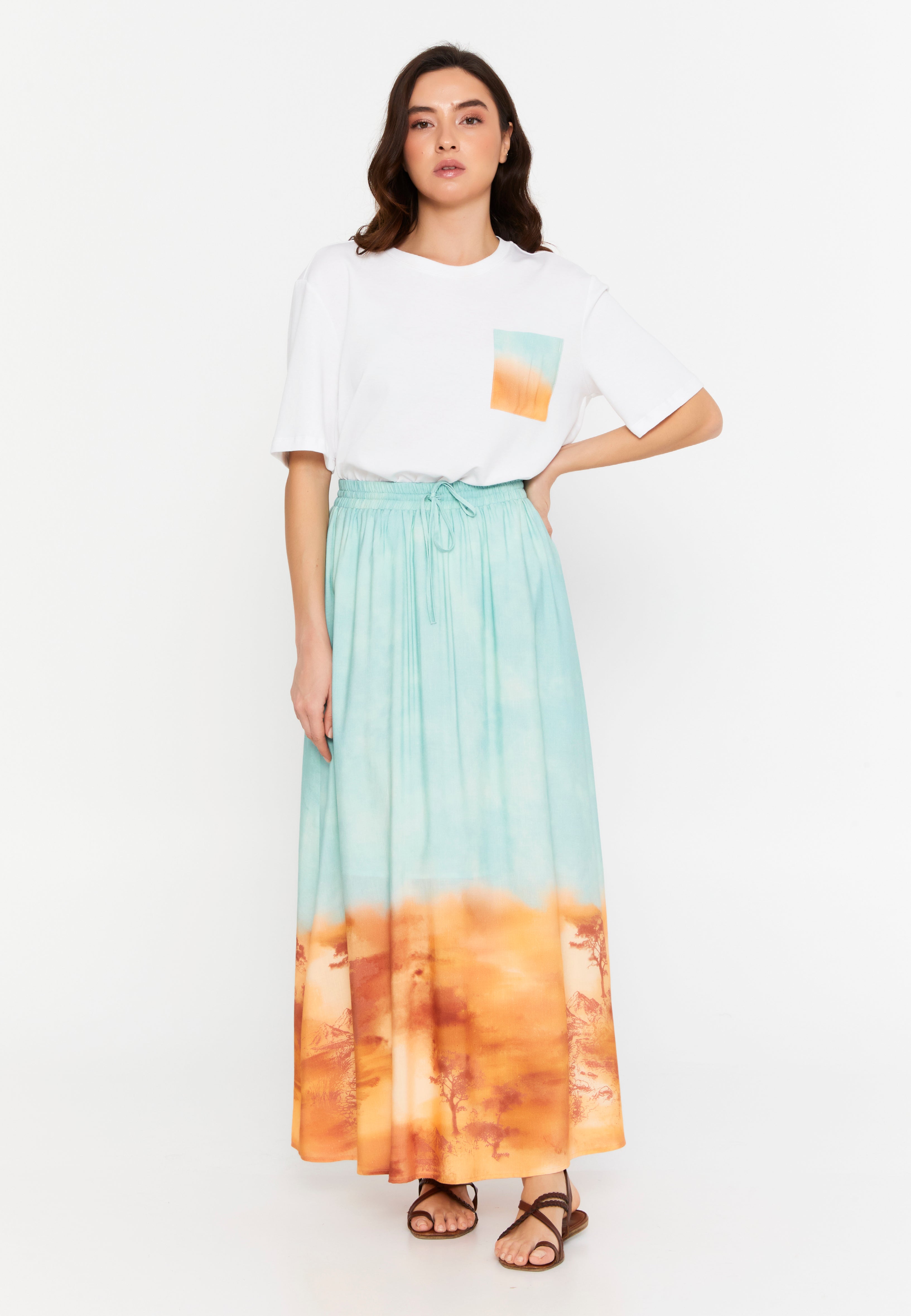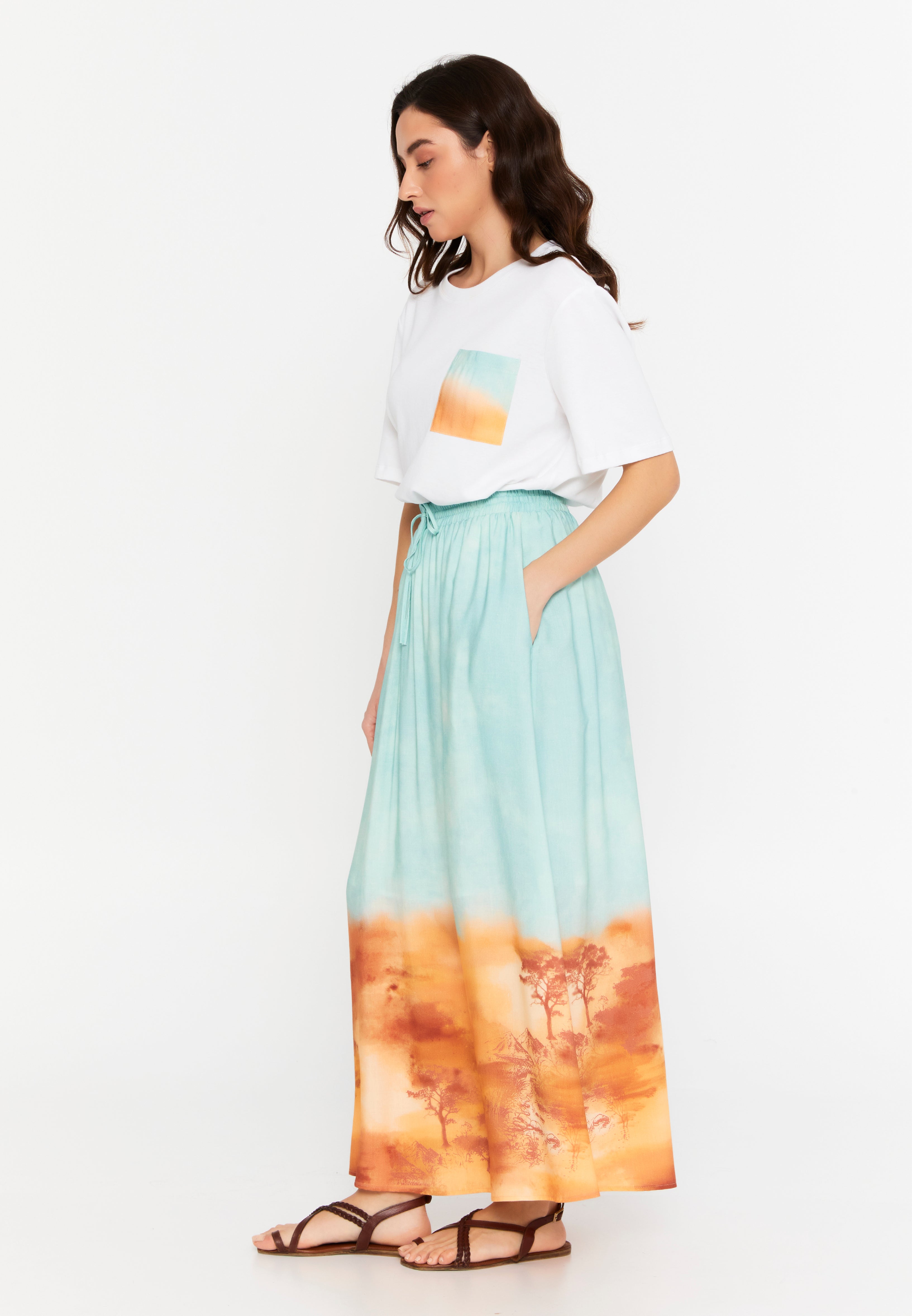 Gökyüzü Mavisi-Safari Desen Degrade Viskon Etek