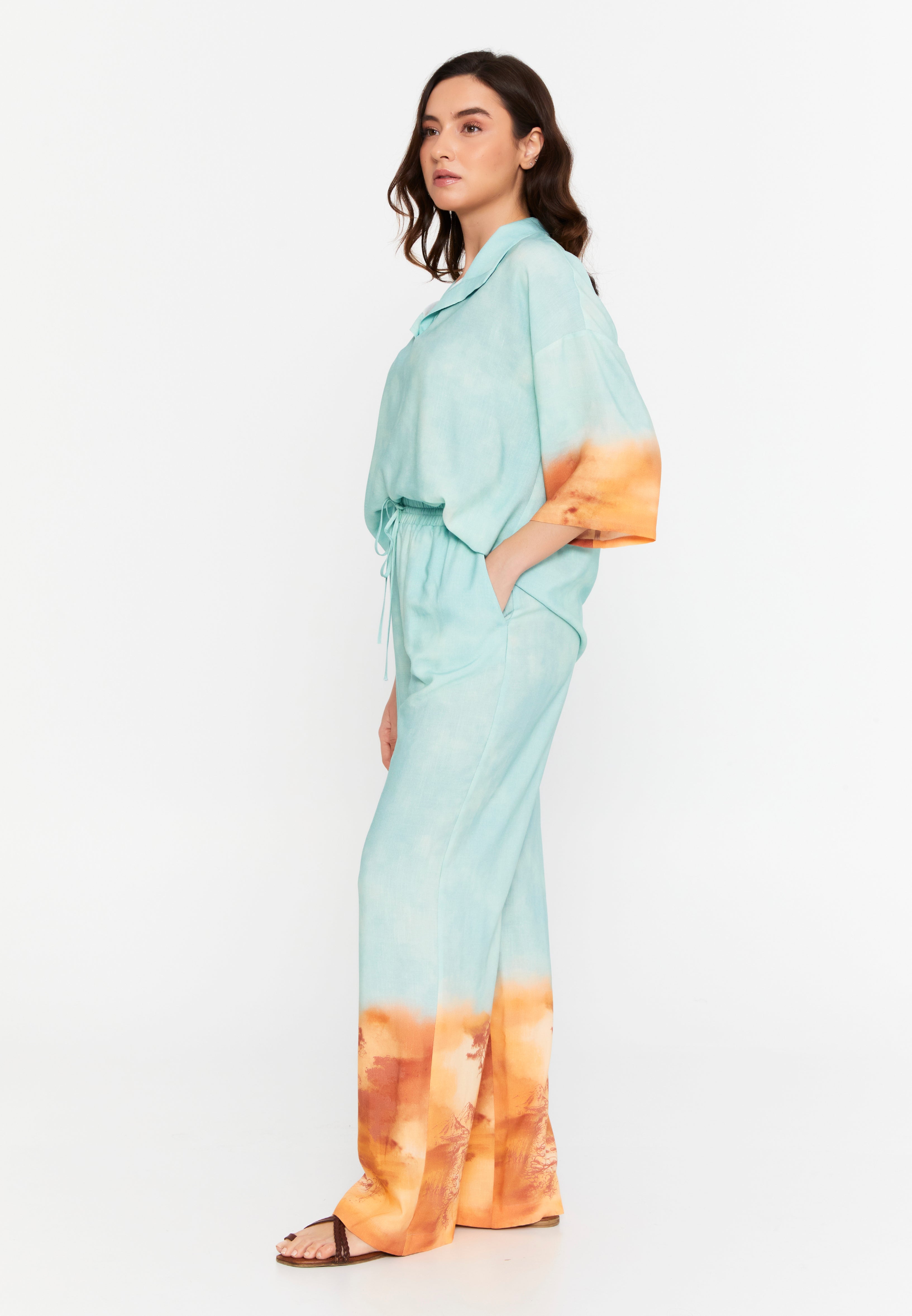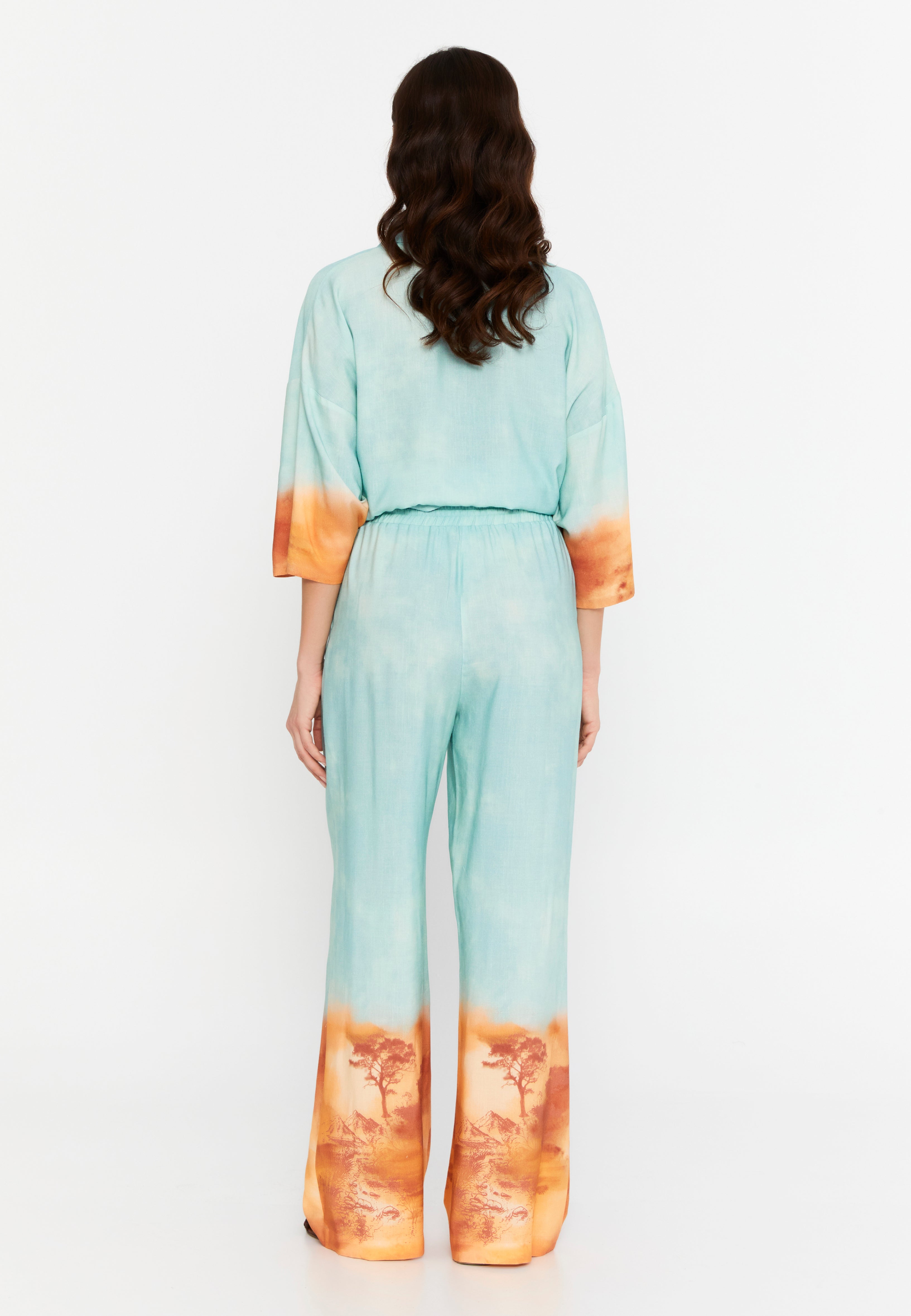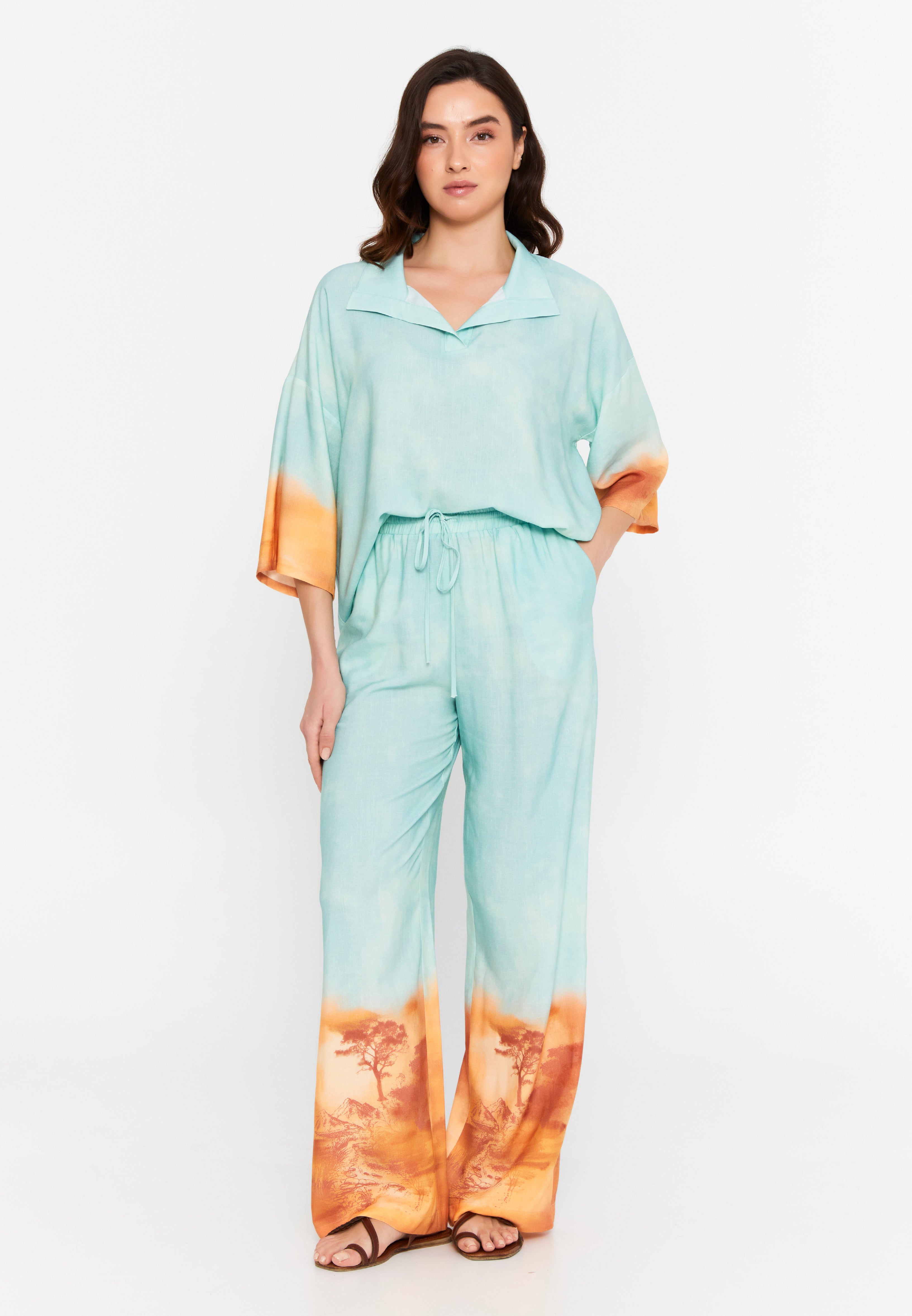 Gökyüzü Mavisi-Safari Desen Degrade Viskon Pantolon