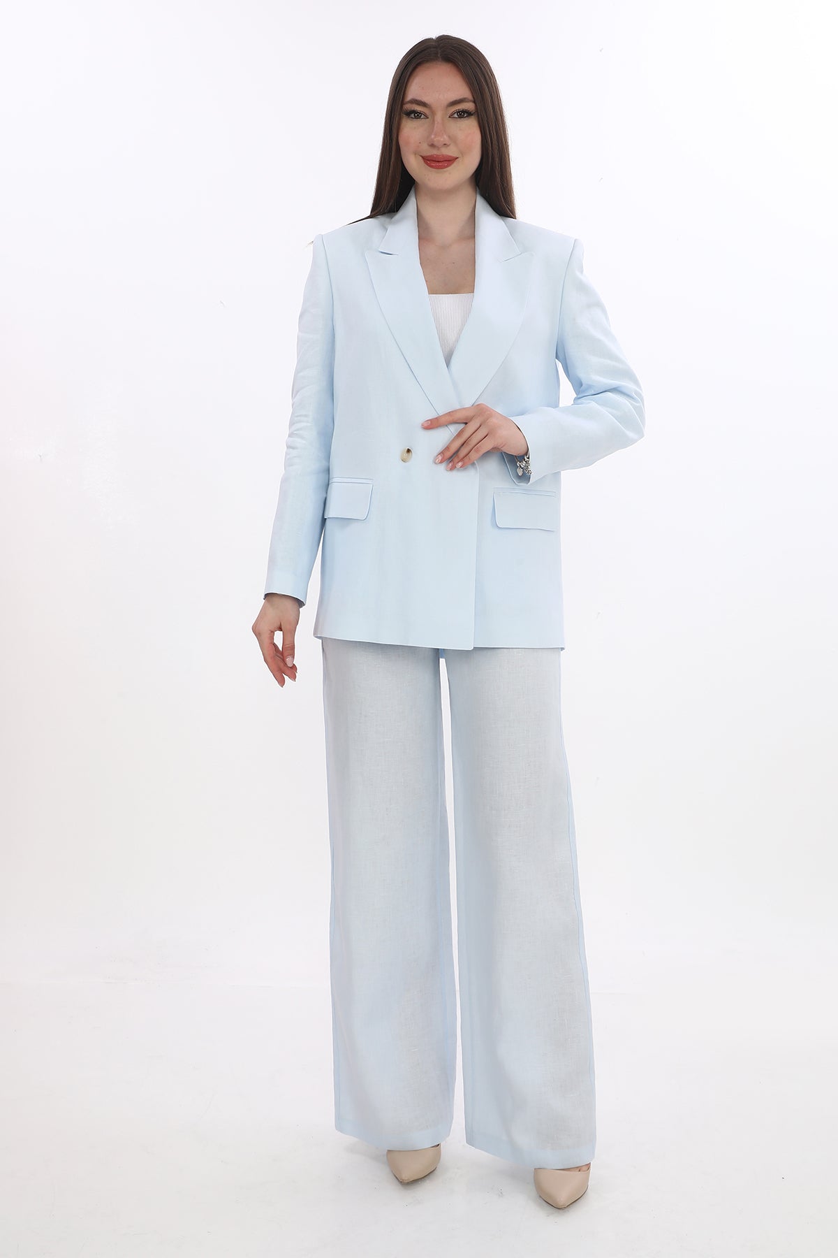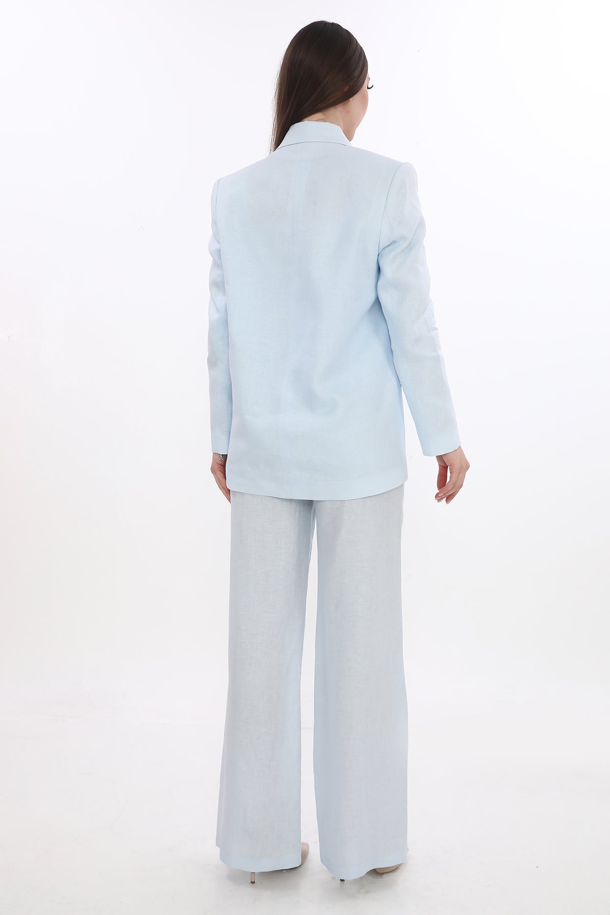 Keten Buz Mavisi Oversize Kruvaze Ceket
