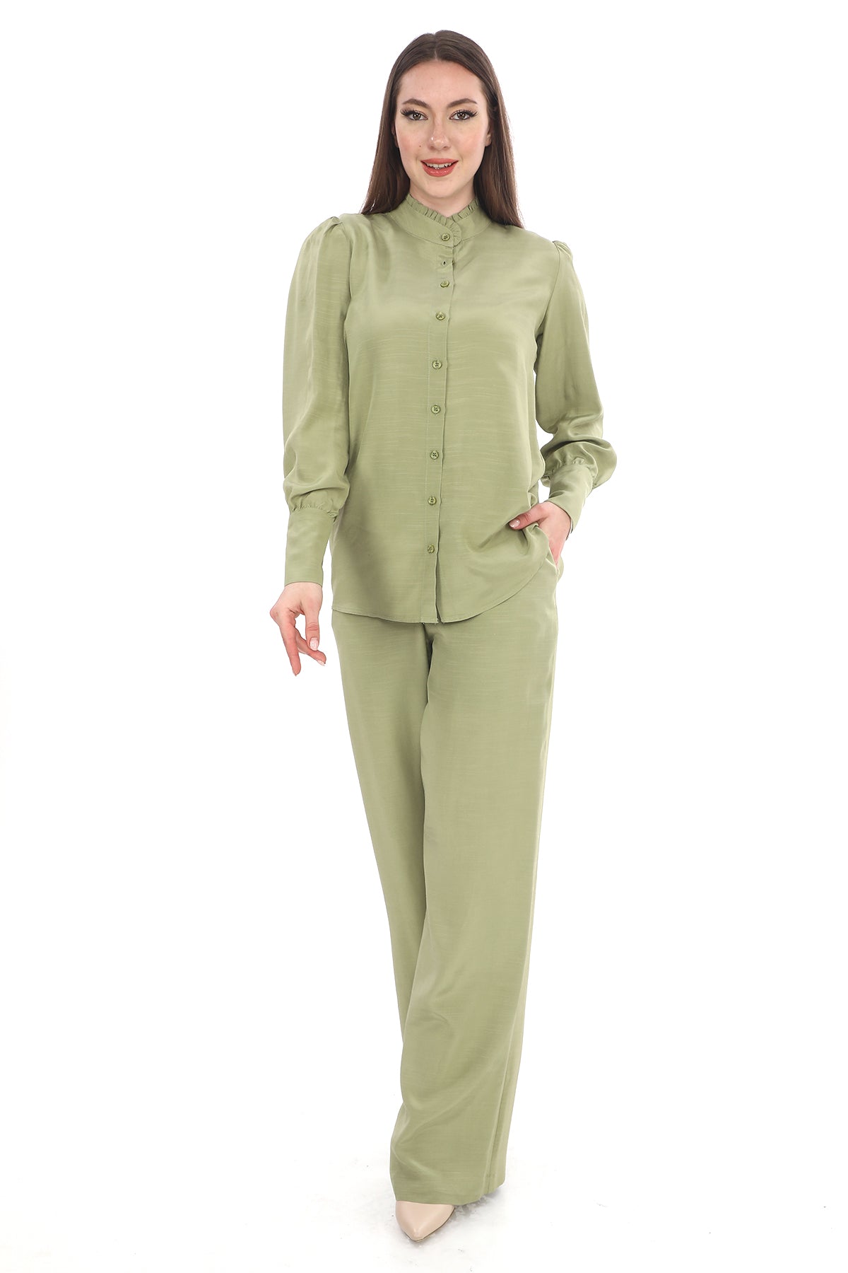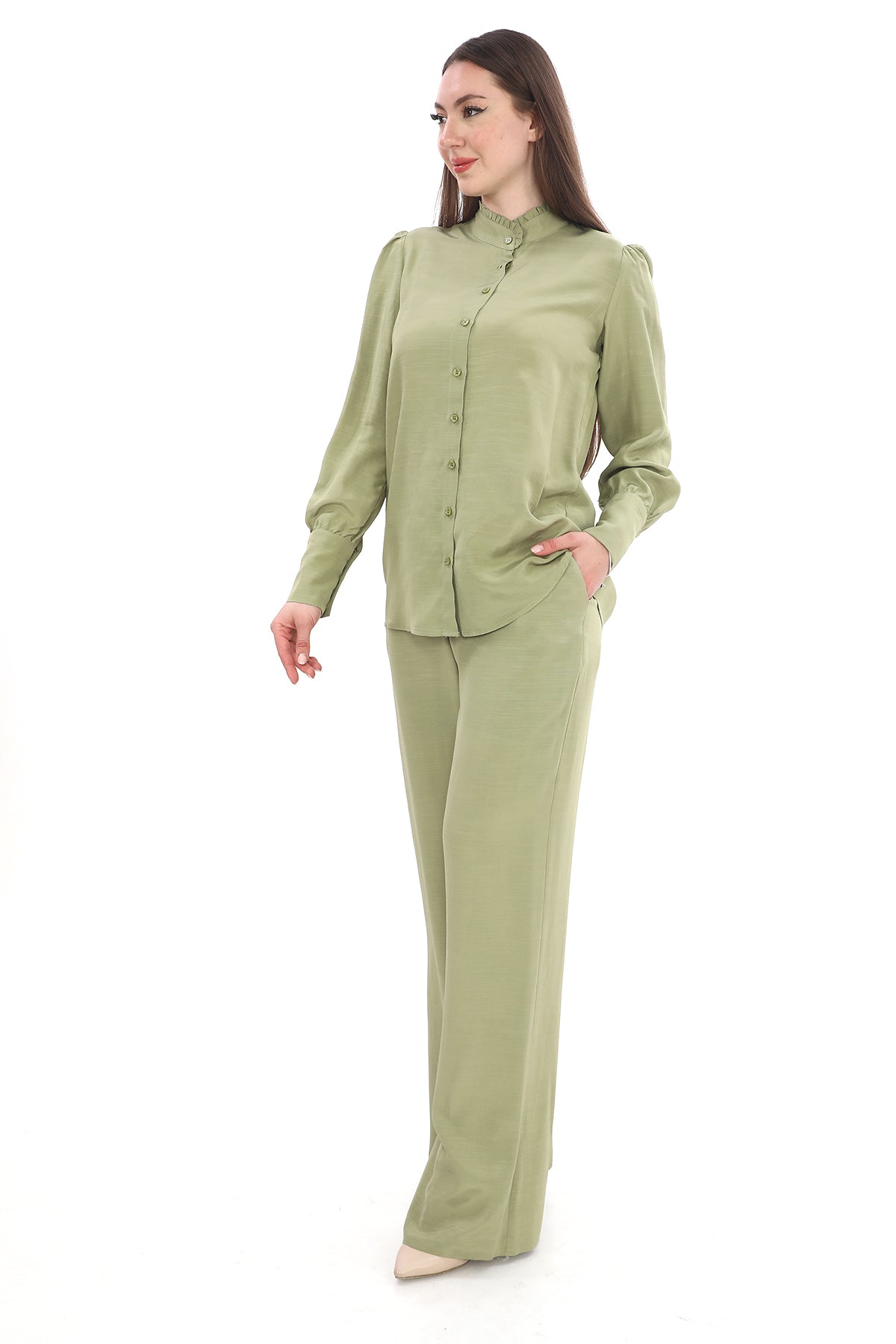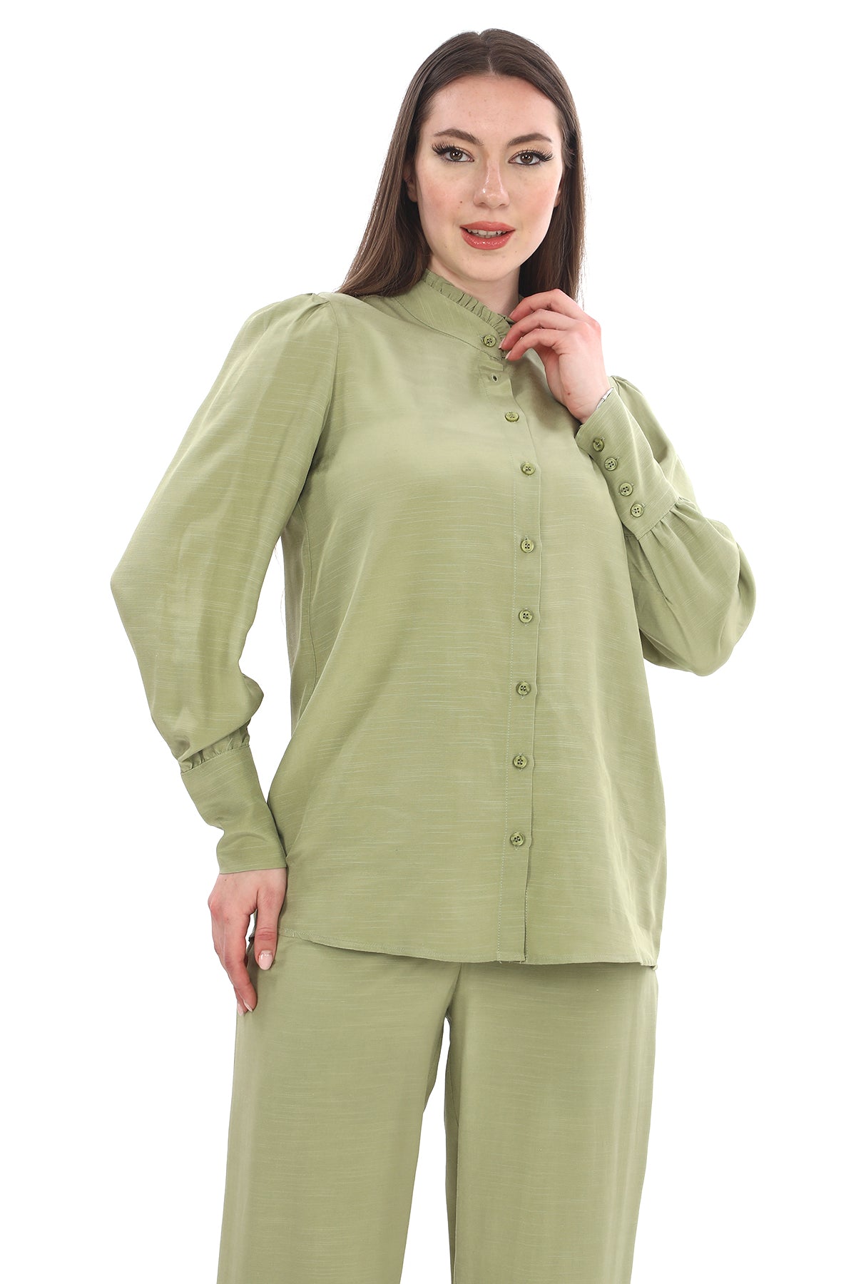 Keten Tensel Haki Gömlek